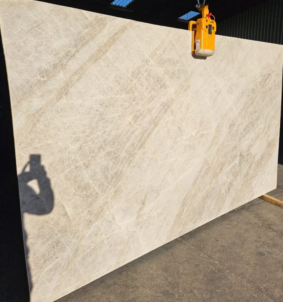 Le quartzite Taj Mahal incarne le raffinement, offrant des teintes ivoire lumineuses ornées de veinures délicates qui évoquent une beauté intemporelle. Son aspect captivant en fait un choix idéal pour ceux qui souhaitent sublimer leur intérieur d’un luxe intemporel. Que ce soit pour des plans de travail, des sols ou des revêtements muraux, ce quartzite haut de gamme se distingue par sa polyvalence et sa durabilité à toute épreuve.